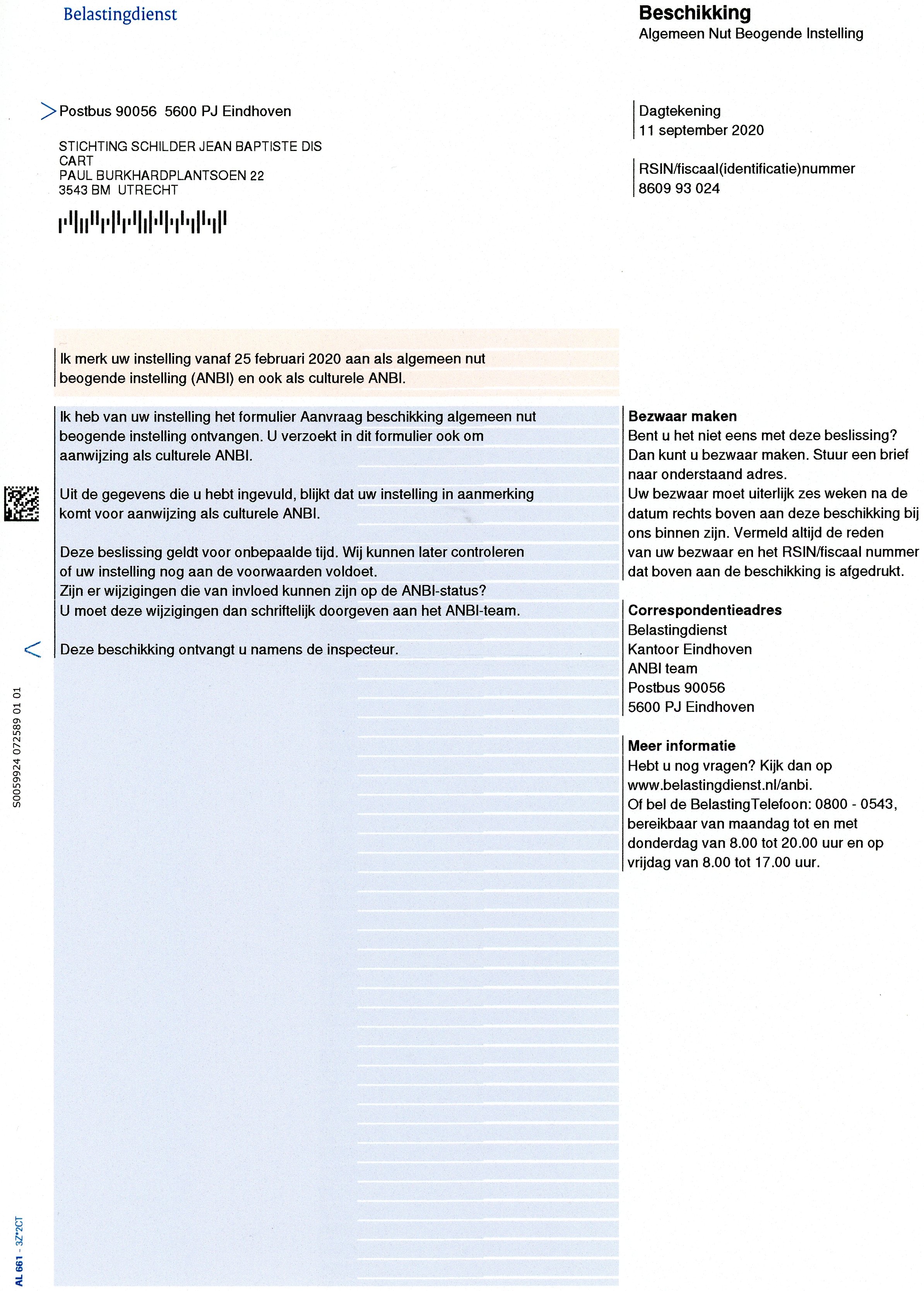 - Het bestuur van de Stichting schilder Jean Baptiste Discart bestaat uit: